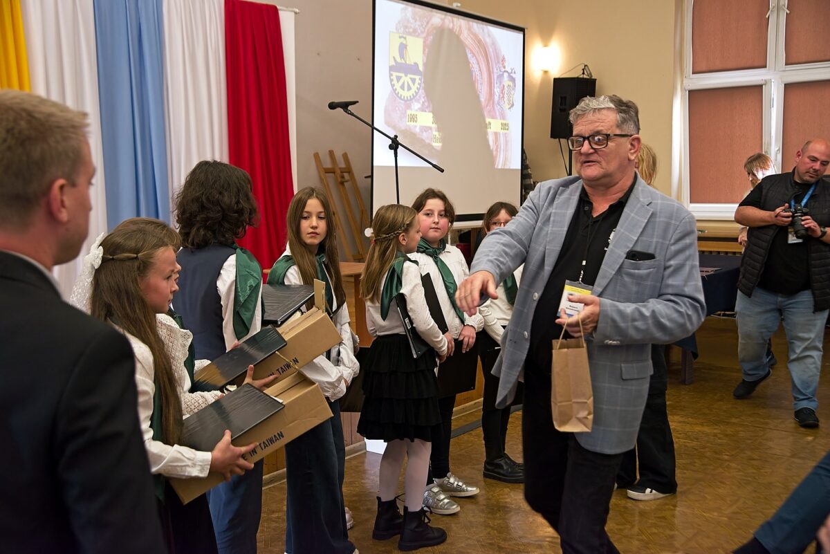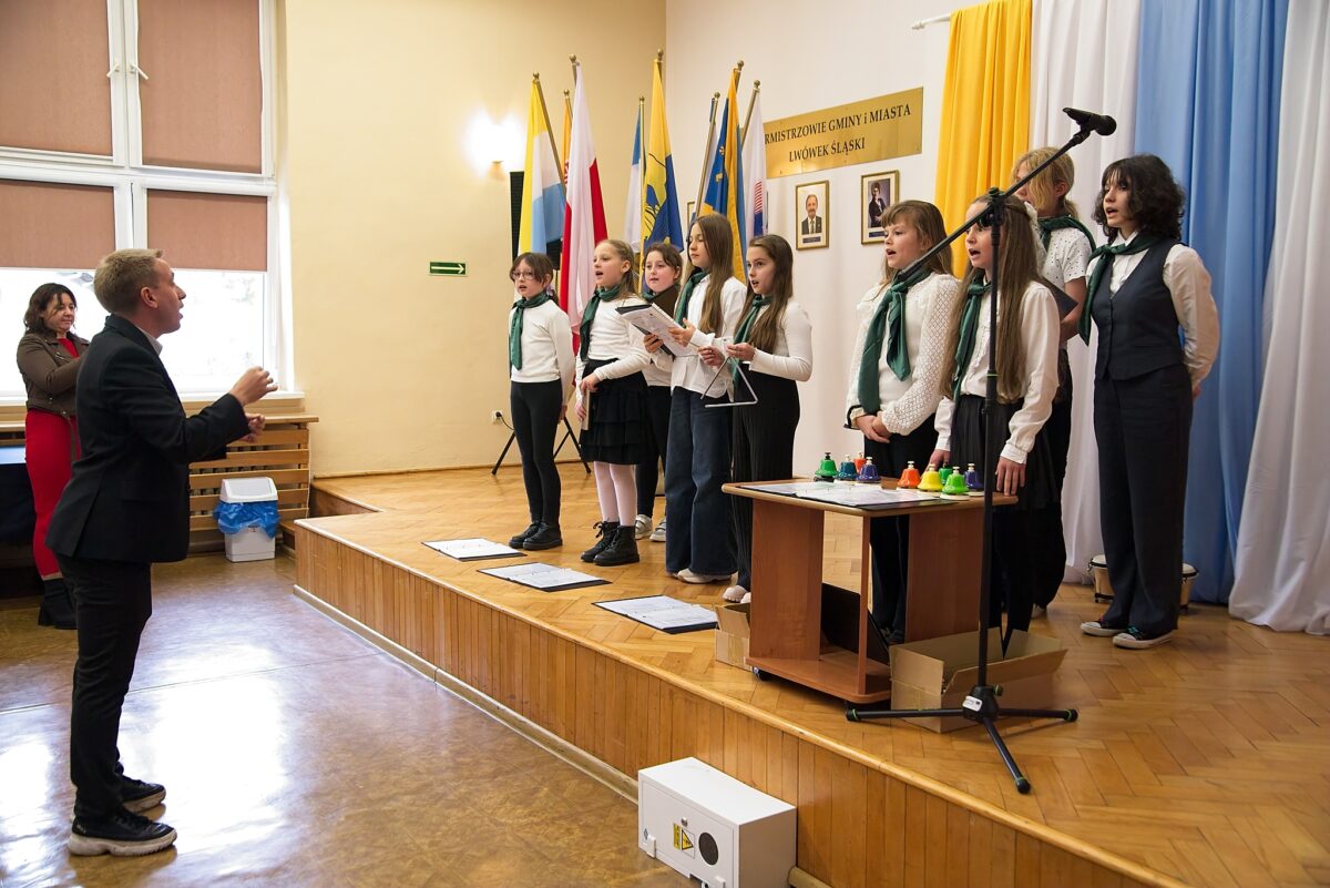 Herr Bürgermeister Kobiałka gab seiner Freude Ausdruck, dass dieses Treffen von drei Städten verwirklicht werden konnte und betonte, wie wichtig gerade in der gegenwärtigen Zeit voller Spannungen und Probleme die friedliche und freundschaftliche Begegnung der Menschen geworden ist. Ein Schulkinderchor begrüßte die Gäste mit mehreren schönen Liedern und sorgte für einen würdigen Rahmen.